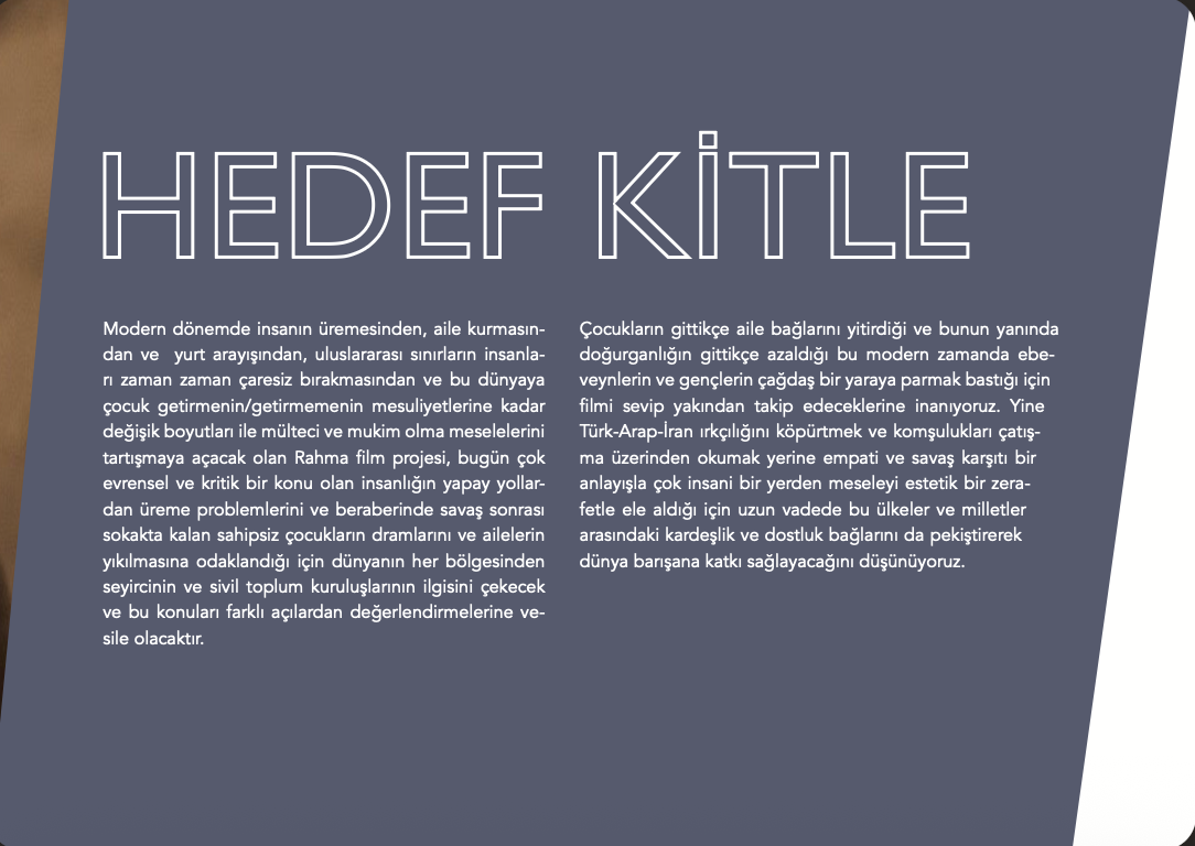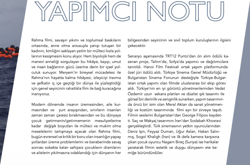 *Rahma Filmi Tallinn Film Festivali Ortak Yapım, Work In Progress bölümüne seçildi.